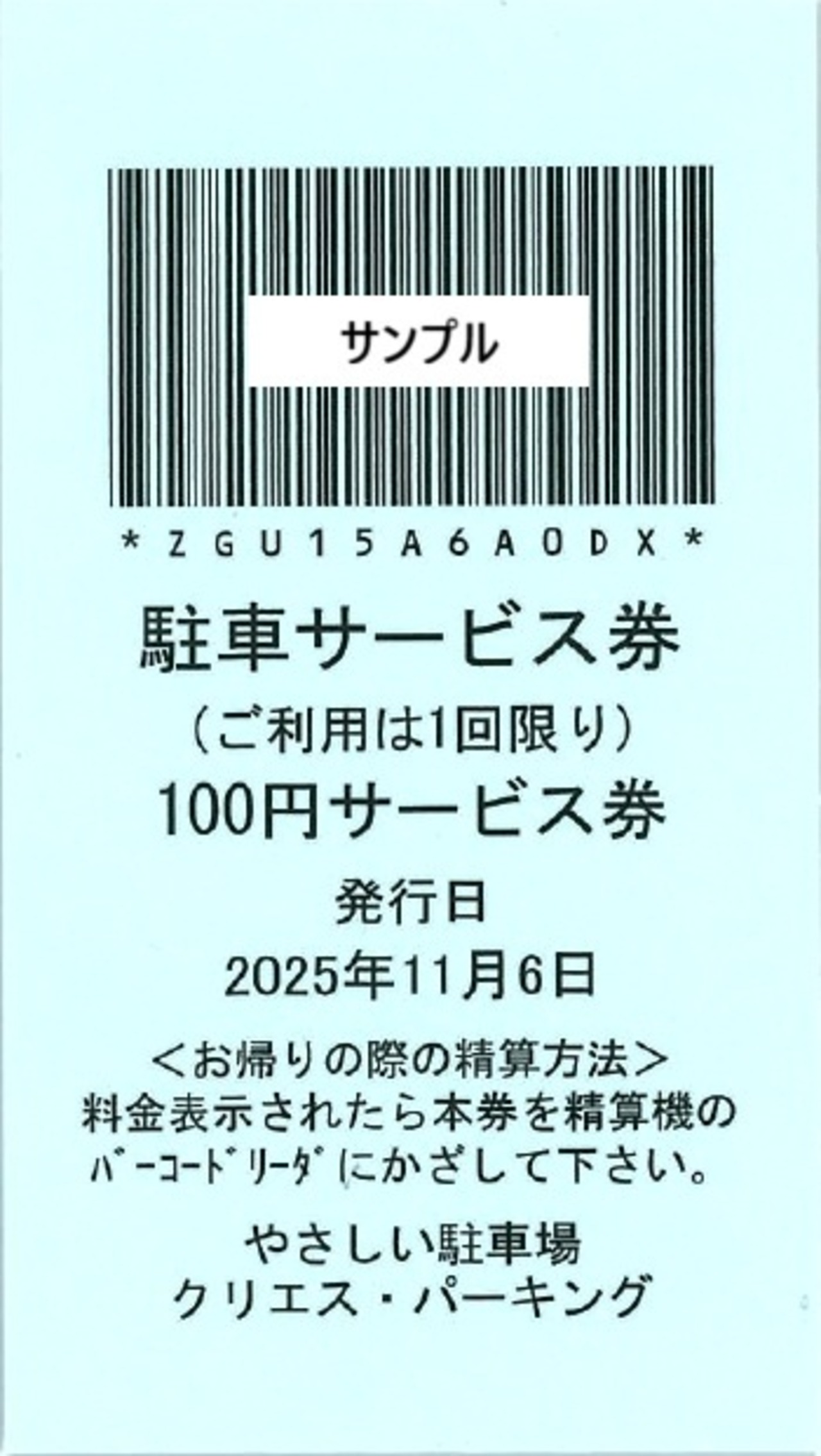 やさしい駐車場/クリエス・パーキングで使用できます 駐車代金から100円が割引される券です 100枚1セットとなります
